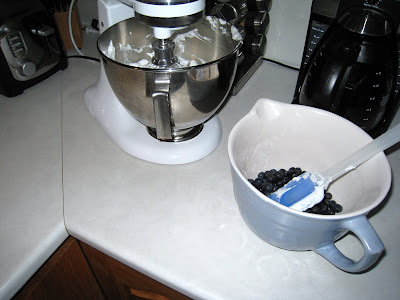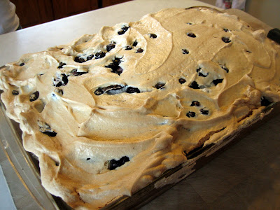Karen found an old Newfoundland recipe book amongst my mother's things and brought it home. She and Melanie decided to surprise my mom with a blueberry meringue cake--the recipe had a sort of check mark beside it. Mom didn't remember the recipe or having ever eaten a cake like this but she did like the cake.