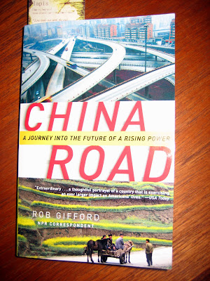 I am currently reading China Road by Rob Gifford. My guilty pleasure is reading...I read when I should be doing other things and I am sometimes late for appointments because I have been reading...I read in bed too. If I wake up in the night, I turn on the light and read instead of going back to sleep, not caring that I will be tired in the morning. I wake early and read in bed. That was my guilty pleasure this morning, I woke and read for 3 hours. Oh it was so pleasant. I like to go to bed early and read if I have a good book. This one, China Road, fits well with my television viewing habits these past two weeks with the Olympics being my favourite thing to watch. The book details Gifford's final and fascinating journey across the 3000 mile Route 312 from Shanghai to Khazakstan before leaving China, a country much misunderstood by Westerners, where he had lived many years. It is a crash history course, gives good insight on the country and its people. A documentary that reads like a novel. Very enjoyable.